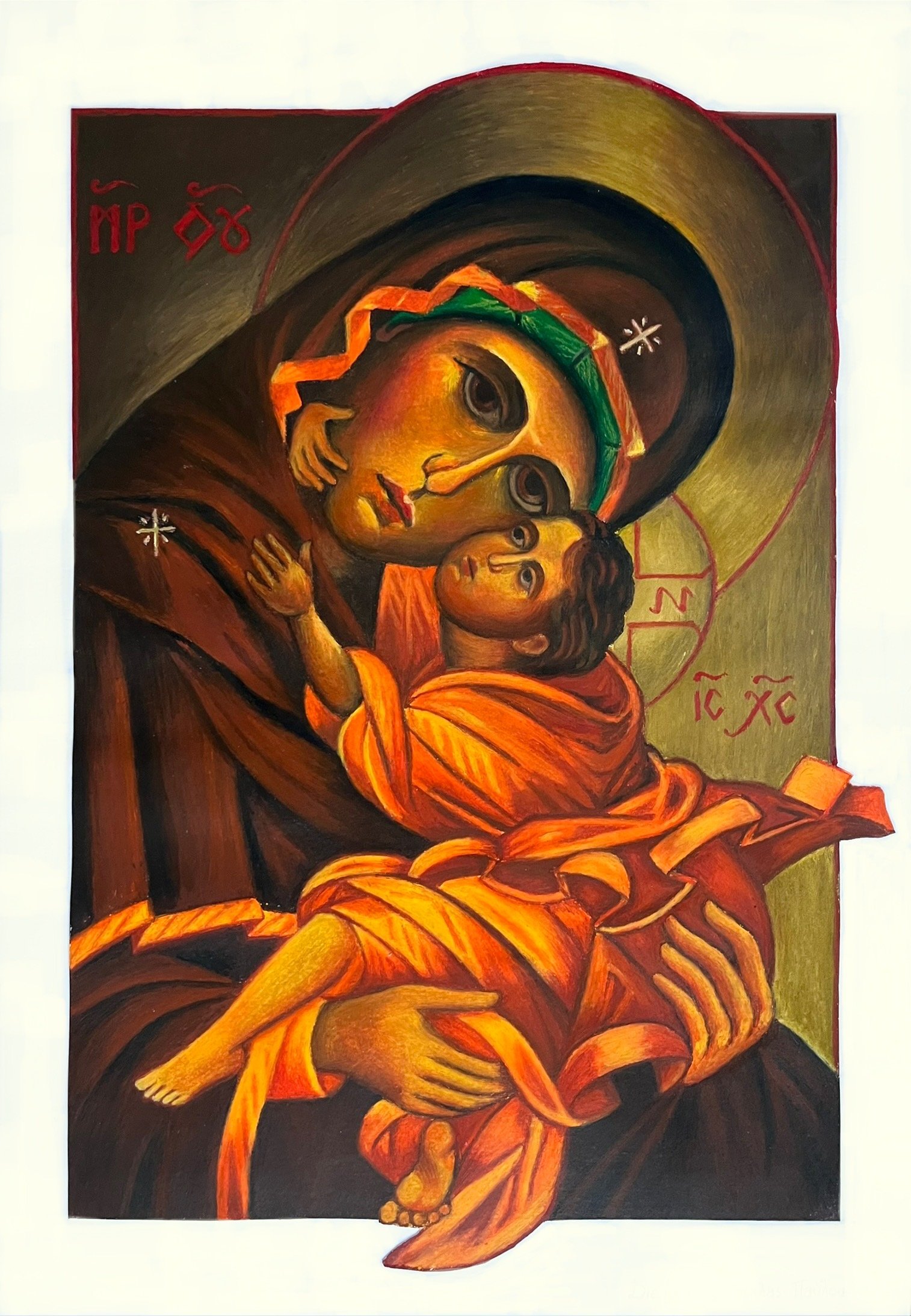 In this section you’ll find my first pieces of Orthodox iconography. These works present a contemporary approach while remaining rooted in the Byzantine Orthodox tradition. Iconography is my most recent artistic exploration, inspired by a desire to offer my God-given talent back to the Lord. I hope to encourage more icons in our homes, especially to the younger generation who may wish to welcome icons in a way that compliments a modern, more contemporary aesthetic. Below are examples of my first few works.